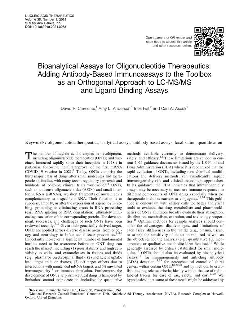 However, challenges such as instability, poor uptake, off-target effects, and immunogenicity hinder their development. Regulatory agencies, including the FDA, stress the need for improved analytical tools. We propose that immunoassays using highly specific anti-ONT antibodies offer a promising solution.